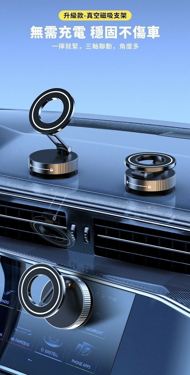 🆅無需充電 穩固不傷車,一擰就緊,三軸聯動,角度多