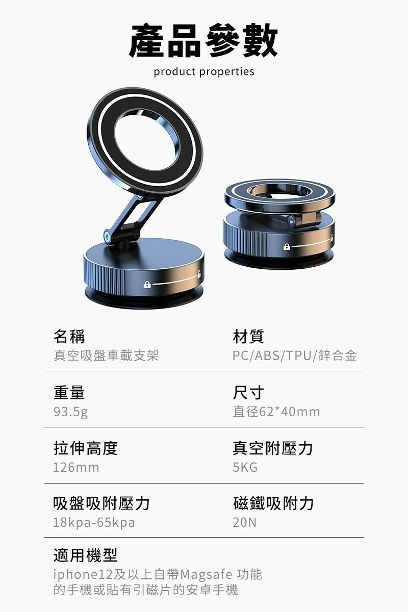 🆅強力吸附最高可承重5KG重力,耐高溫吸盤材質,耐用不變形