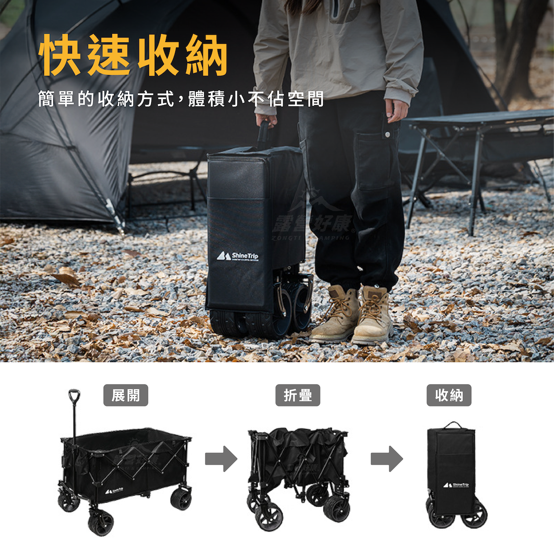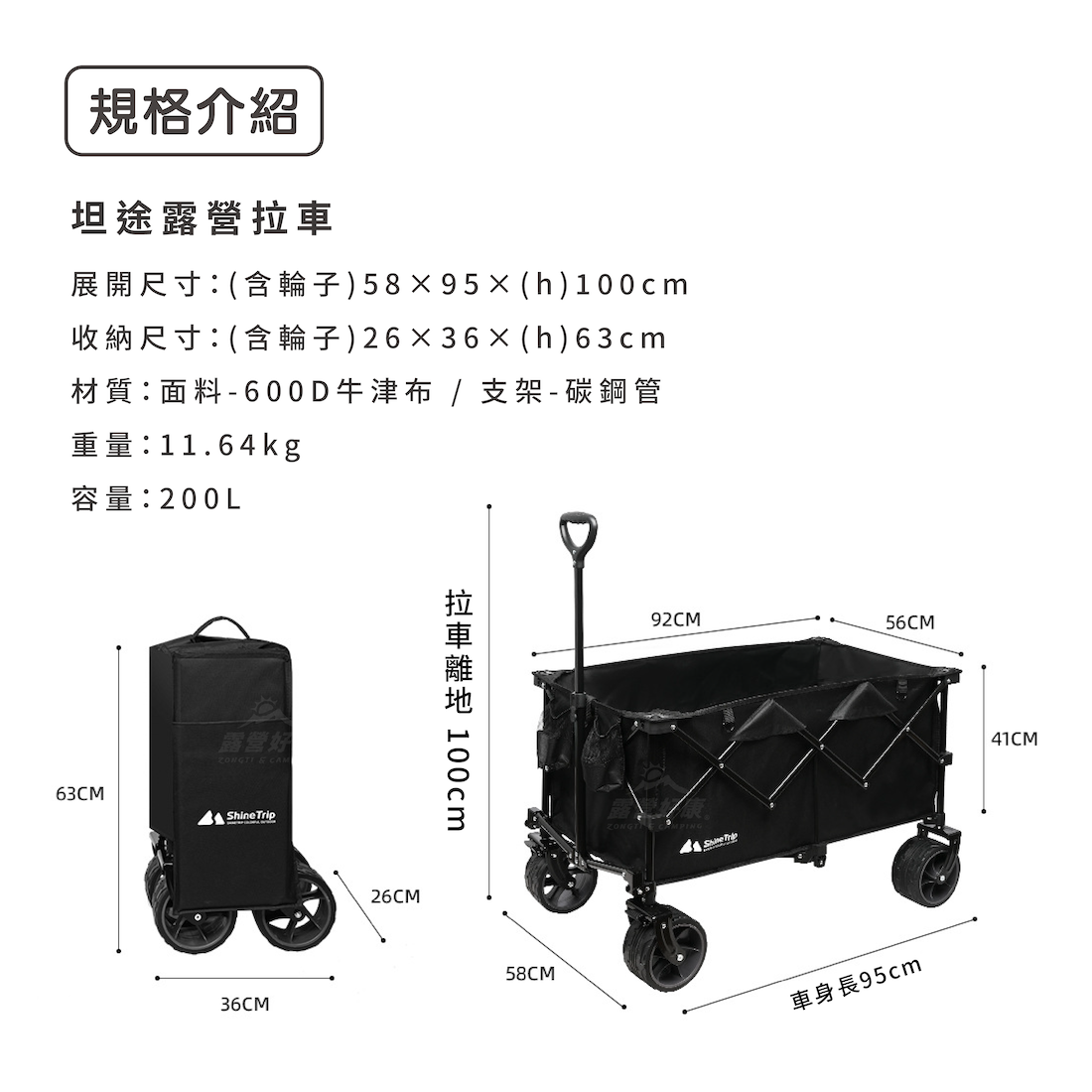 ✔200L大容量裝載,一車滿足4-6人需求,盡載露營裝備
