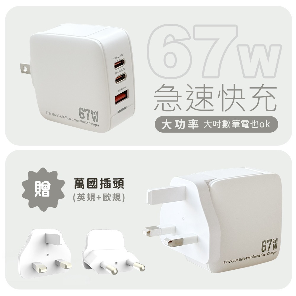 ✔67W急速快充,筆電也通用