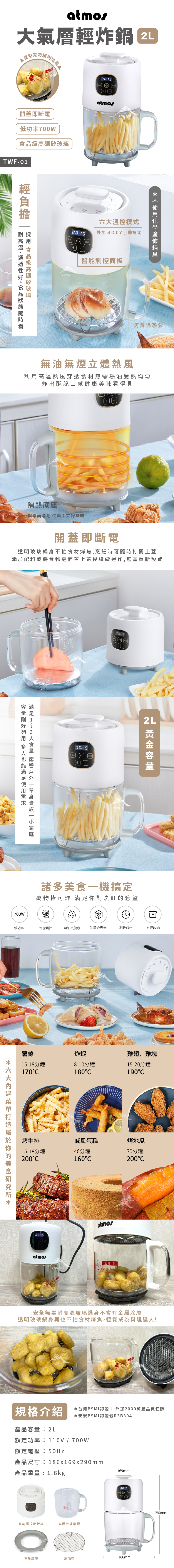 「無毒」「耐高溫」玻璃鍋身,鍋內食物一目瞭然 清洗方便快速 不怕刮傷智能觸控面板,六大溫控模式。