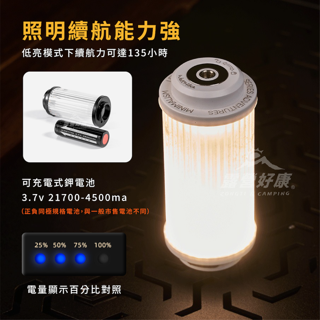 ✔照明續航能力強,低亮模式下續航力可達135小時