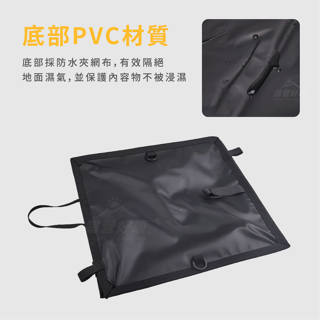 ✔底部PVC防水夾網布,有效隔絕地面濕氣,並保護內容物不被浸濕