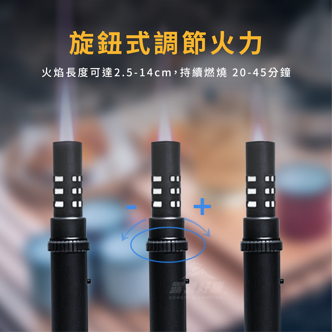 ✔旋鈕式調節火力:火焰長度可達2.5-14cm,持續燃燒 20-45分鐘