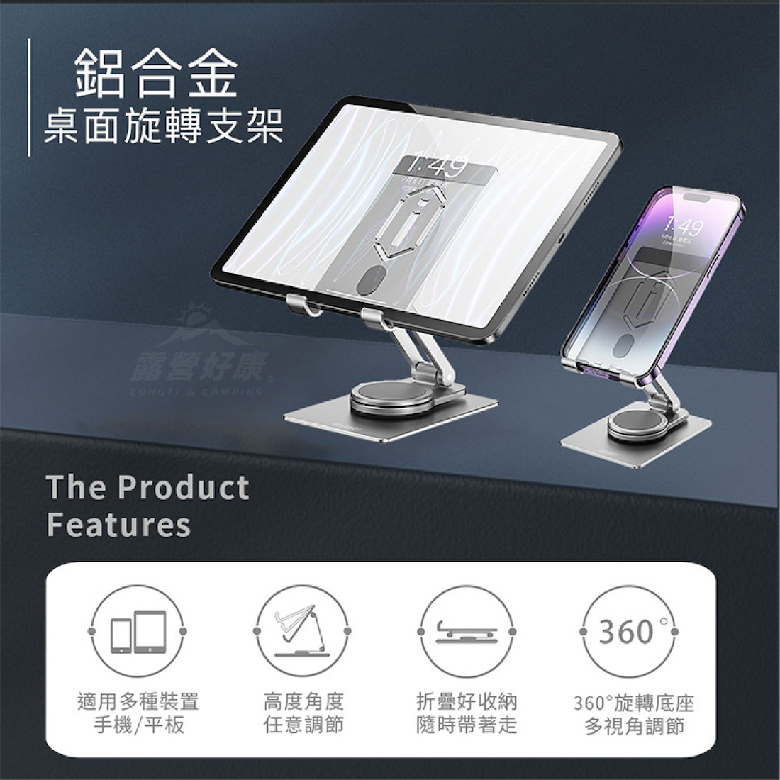 ・鋁合金材質堅固耐用,穩固支撐