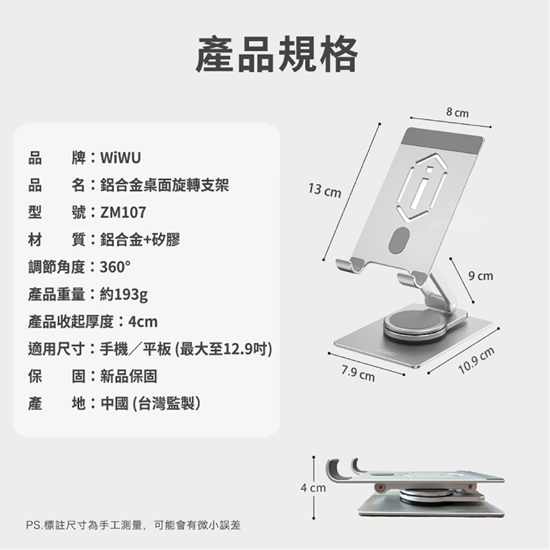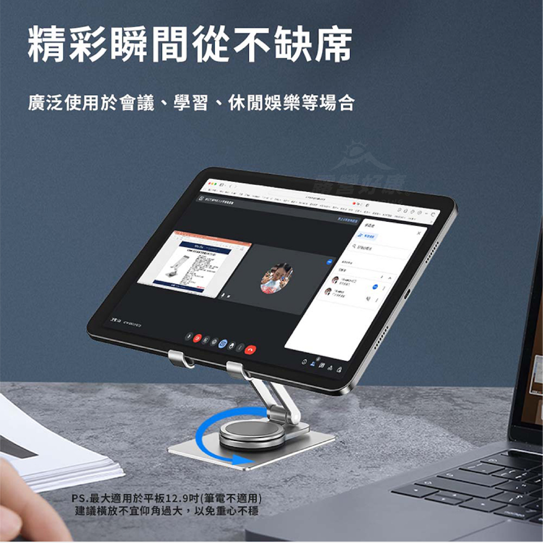 ・最大適用於平板12.9吋(筆電不適用),建議橫放不宜仰角過大,以免重心不穩