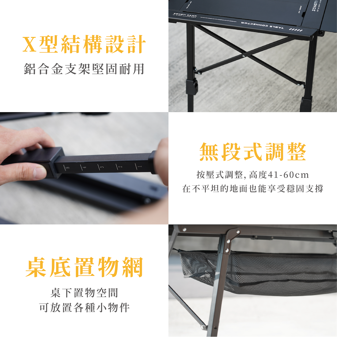✔ 堅固航太級鋁合金製成,桌板與框架分開收納