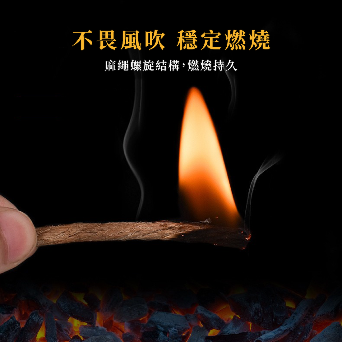 麻繩螺旋結構,燃燒持久