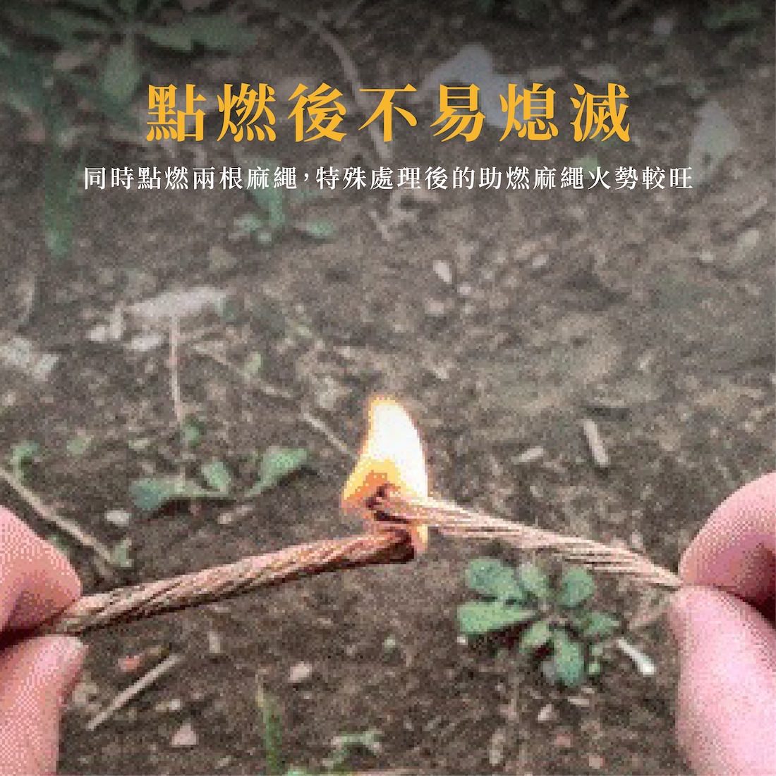同時點燃兩根麻繩,特殊處理後的助燃麻繩火勢較旺