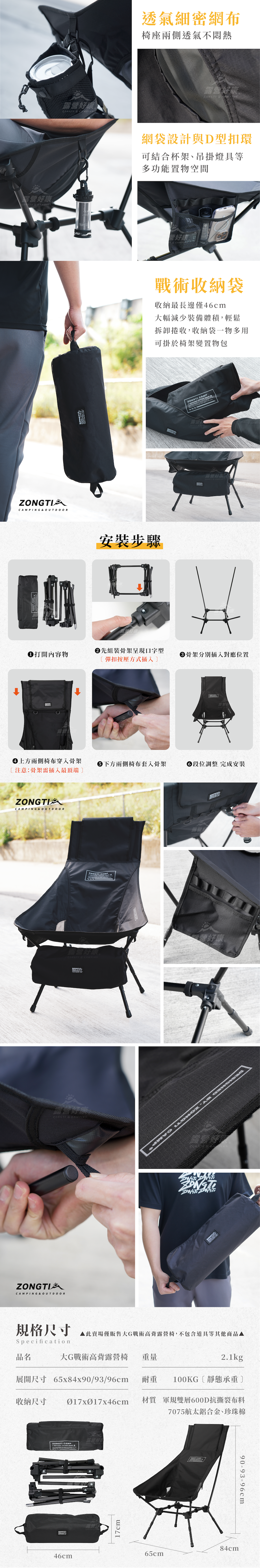 ✔戰術椅收納最長邊僅46cm,輕鬆拆卸捲收,減少攜帶裝備體積