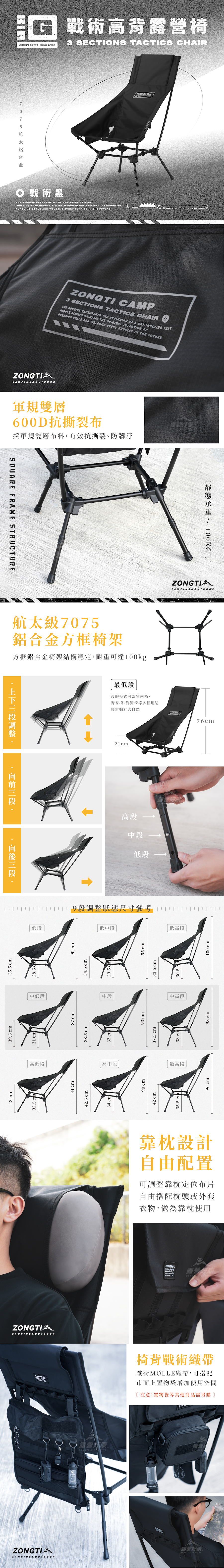 ✔突破戰術椅最高調整幅度,三段高度調整+六段椅背傾斜度+最低段渡假模式