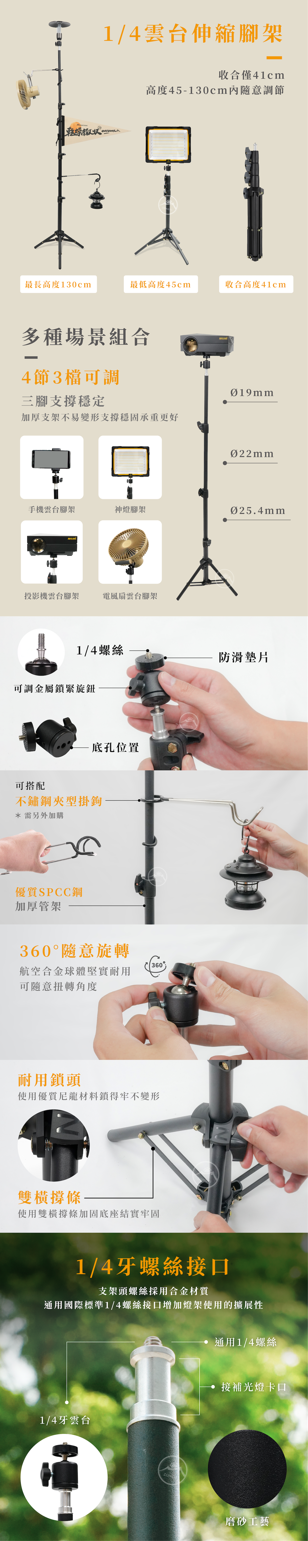 ✔ 1/4牙螺絲接口,增加燈架使用的擴展性