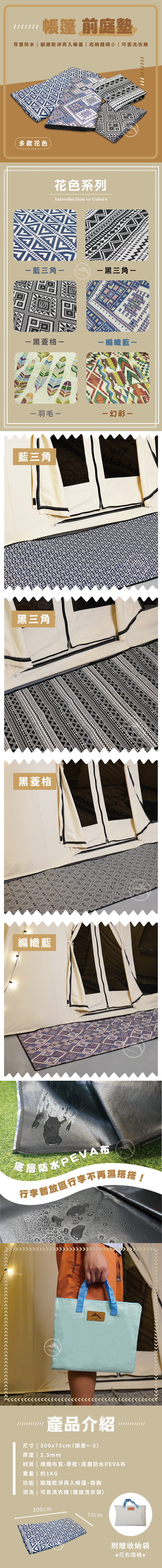 功能:腳踏乾淨再入帳篷、裝飾