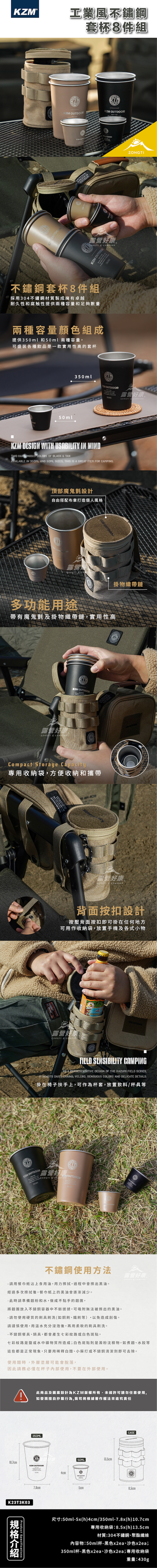品名 KZM 工業風不鏽鋼套杯8件組