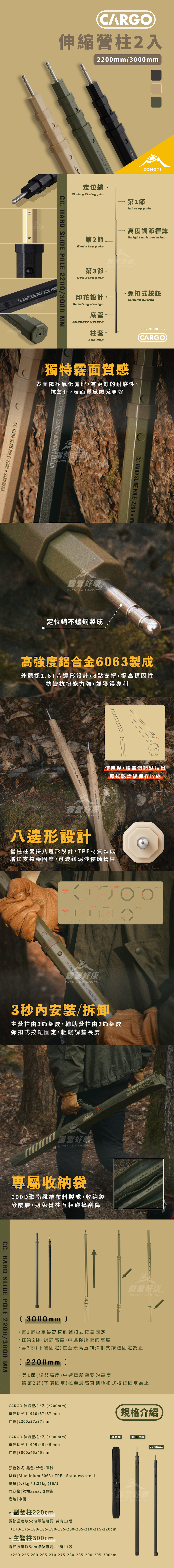 〔 副營柱220cm 〕調節長度以5cm單位可調,共有11段