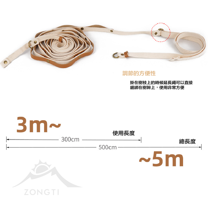 只要掛在樹枝上的延長繩可以直接綑綁在樹枝上使用非常方便~