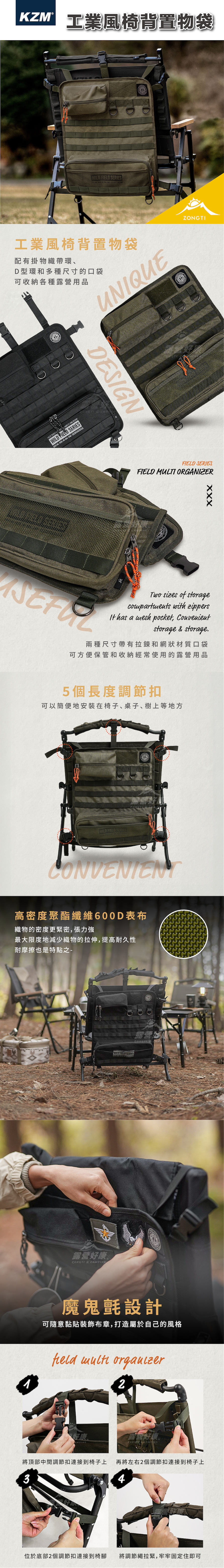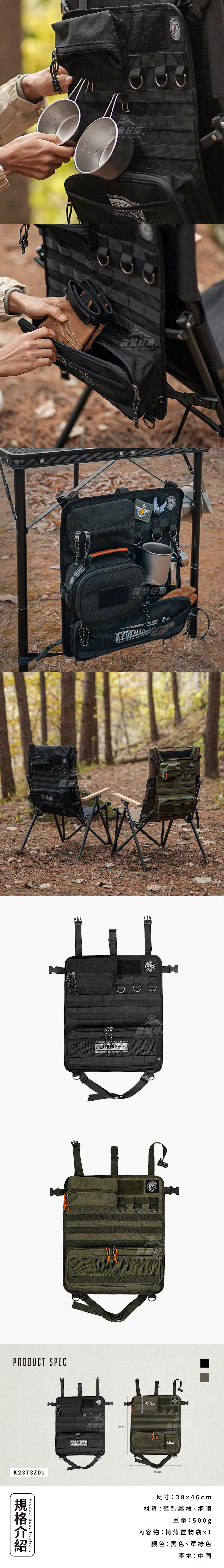 KZM 工業風椅背置物袋 黑色/軍綠色
