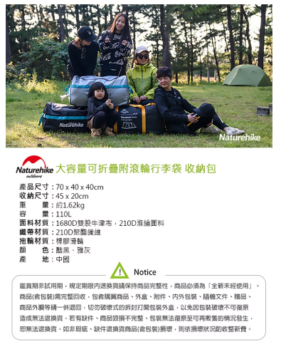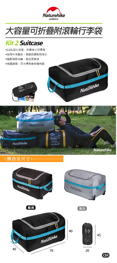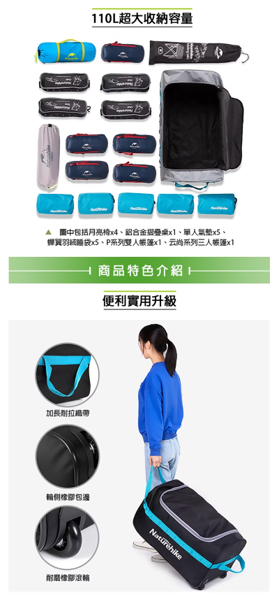【Naturehike】 大容量可折疊附滾輪行李袋 收納包 110L D-5-2