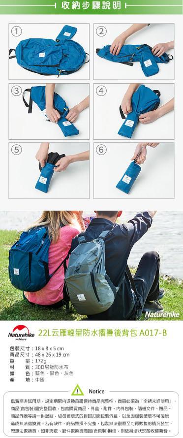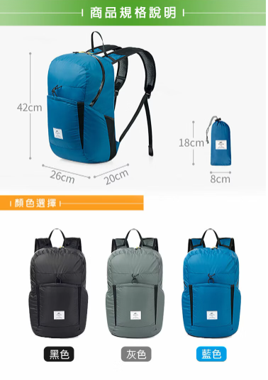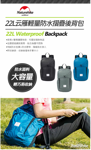 【Naturehike】云雁輕量防水摺疊後背包 攻頂包 22L A017-B FE11