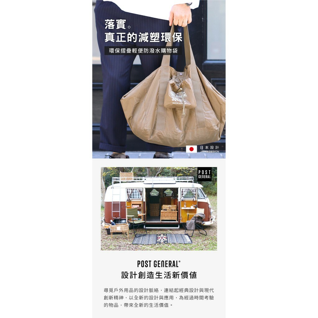 POST GENERAL環保摺疊輕便防潑水購物袋/手提袋/環保袋,使用耐水性高的聚酯纖維製作,放入冷凍食品或帶有水氣的物品也不怕潮濕,收納後體積小方便攜帶,展開時可直接套於超市購物籃使用。