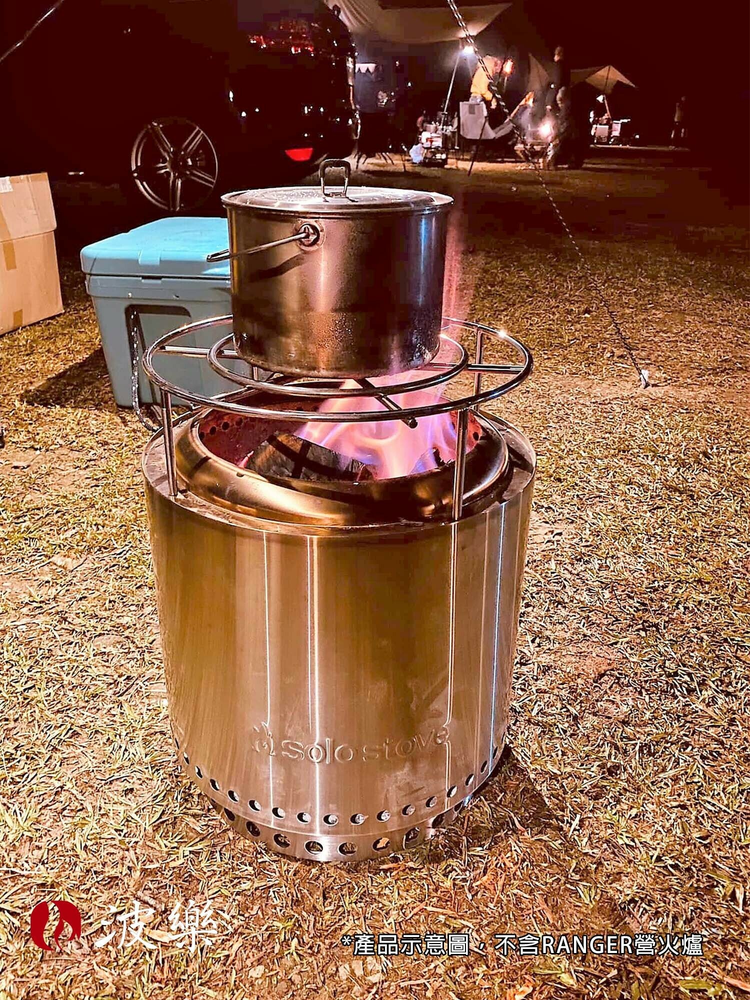 可拆卸式不銹鋼火爐架,厚實耐用,適用於Solo Stove Ranger 營火爐,便於戶外野營、露營料理炊煮;可與Ranger營火爐共同收納,便於攜帶。