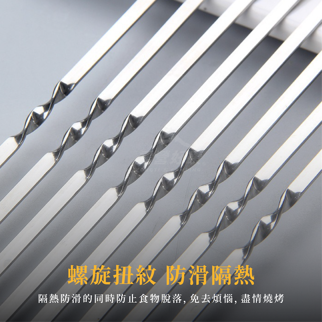 ✔螺旋扭紋防滑隔熱,同時防止食物脫落,免去煩惱,盡情燒烤