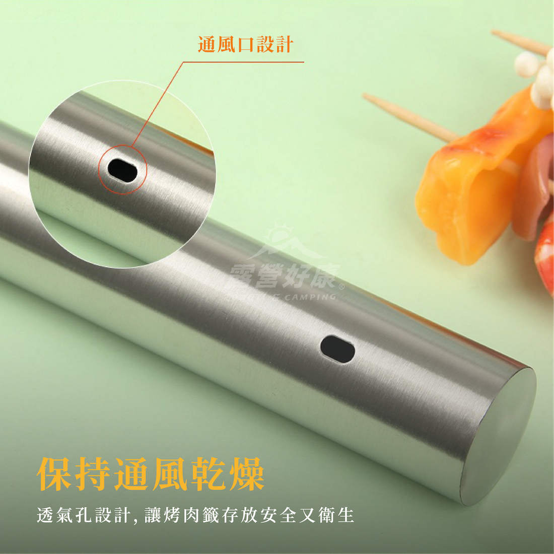 ✔透氣孔設計,保持通風乾燥,讓烤肉籤存放安全衛生