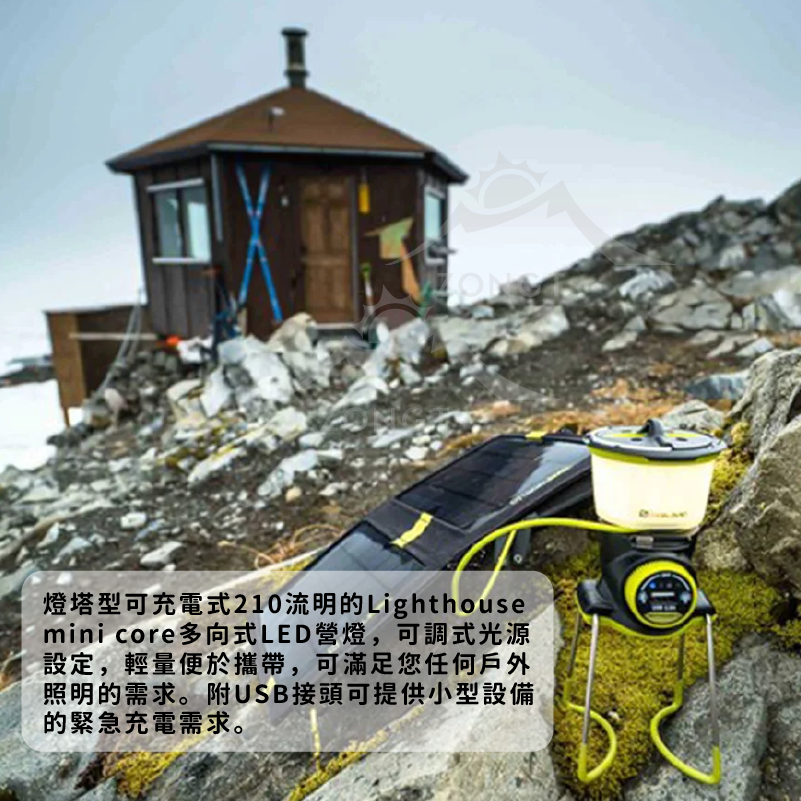 燈塔型可充電式210流明的Lighthouse mini core多向式LED營燈,可調式光源設定,輕量便於攜帶,可滿足您任何戶外照明的需求。附USB接頭可提供小型設備的緊急充電需求。
