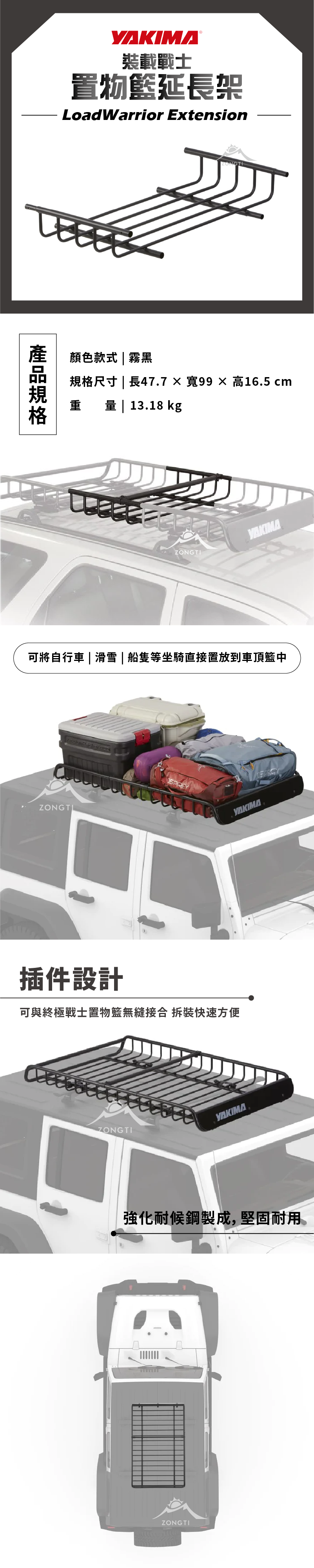 🔥 可選購裝載戰士置物籃『專用加長延伸架』,可擴展18英寸(約46cm)