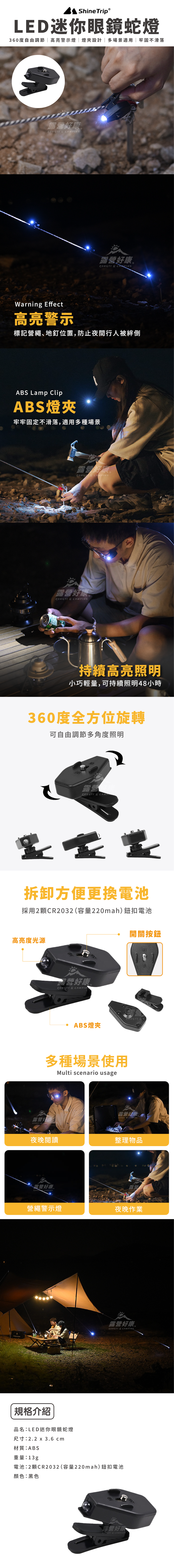 ✔ 高亮警示標記營繩、地釘位置,防止夜間行人被絆倒