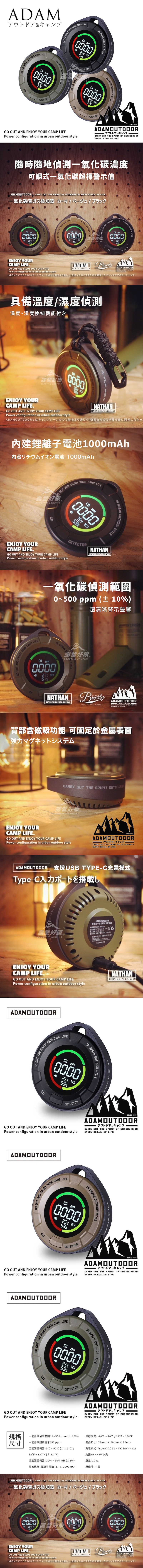 ADAMOUTDOOR 隨身一氧化碳溫濕度偵測器(黑色/沙色/軍綠色)