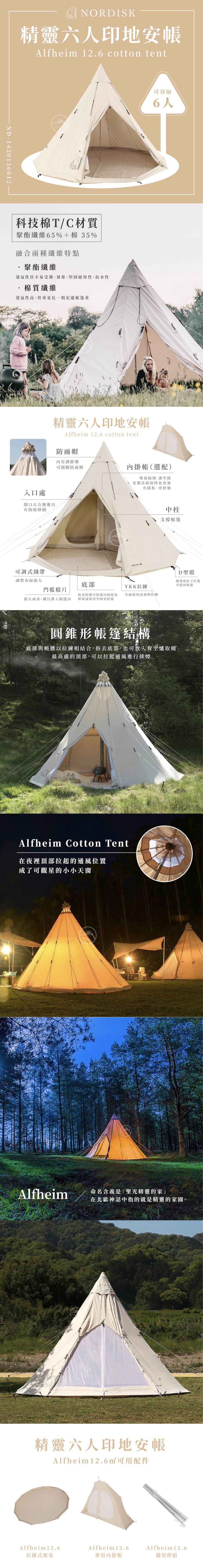 * 【NORDISK】 精靈-六人印地安帳T/C(Alfheim12.6)含底部 ND-1420136012