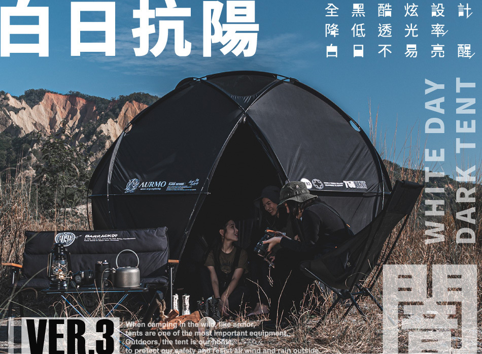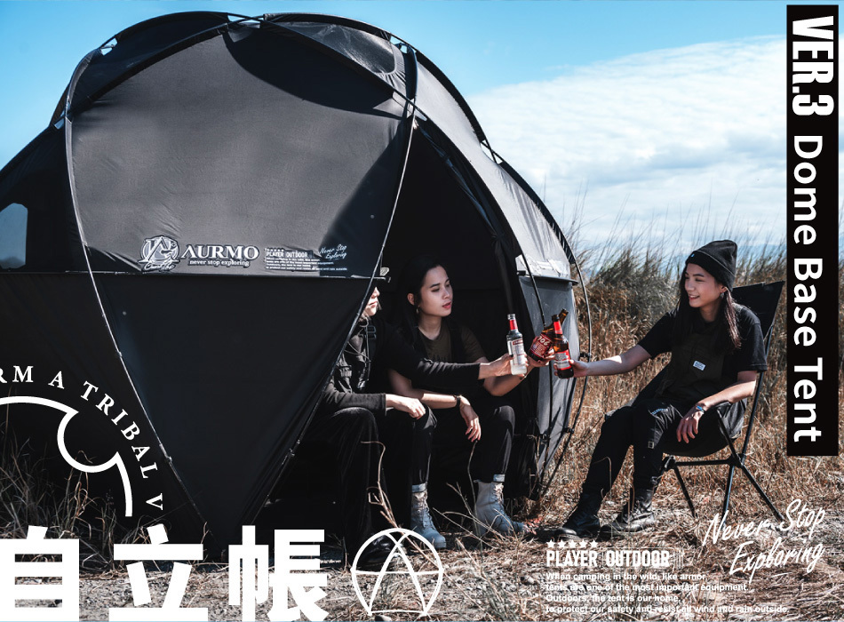 Ver.3 球型基地帳,帳內最高為210cm,帳內免彎腰的舒適活動空間,適合 4人 使用的露營帳篷。此為含外罩賣場。