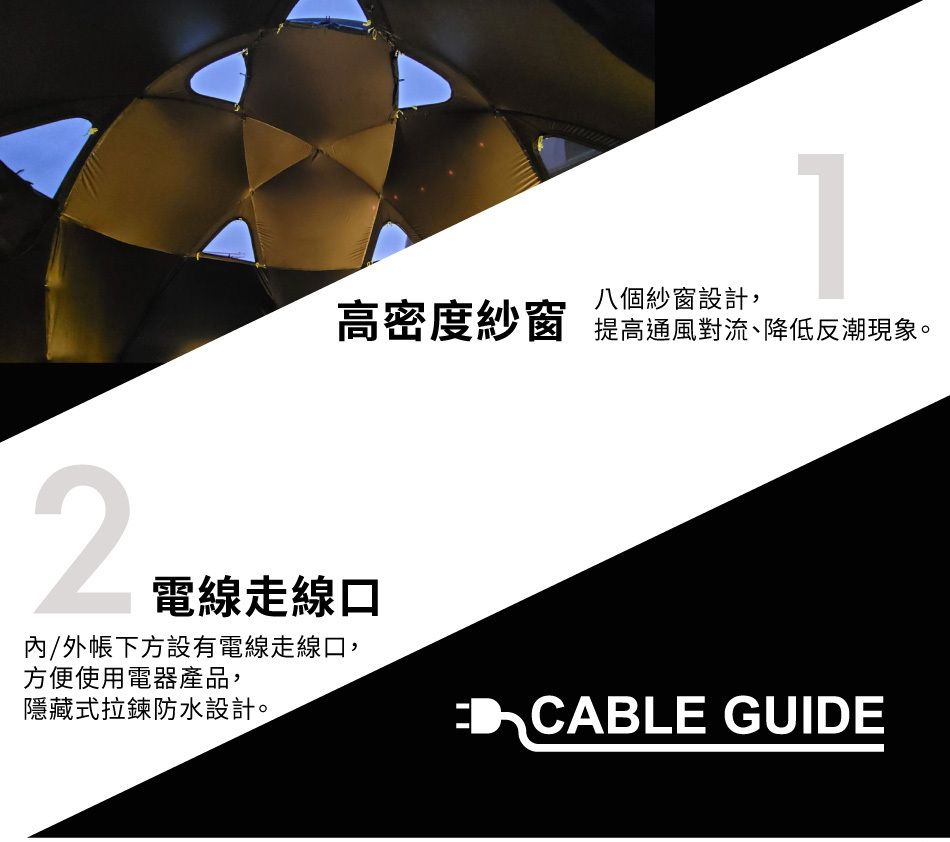🌟營柱X交叉設計,強化穿骨系統,提高帳篷穩固度