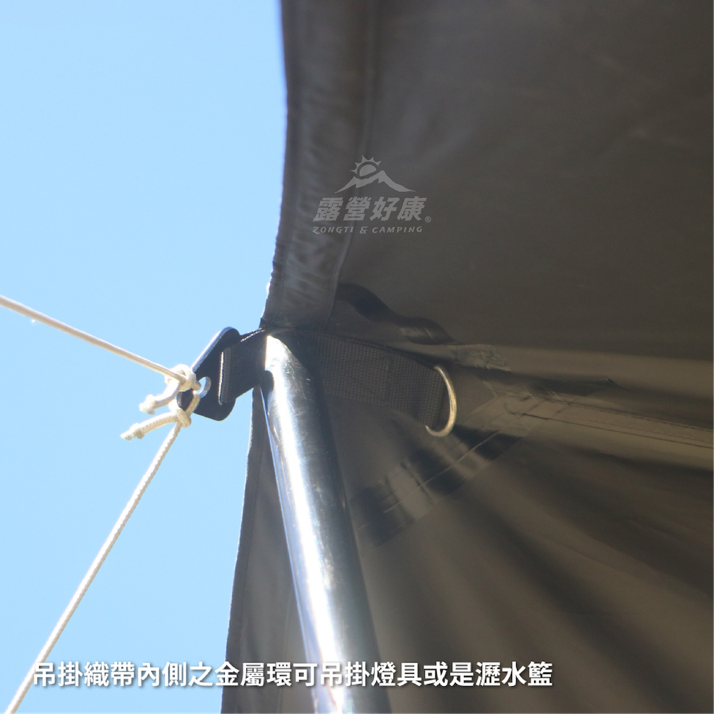 ✔利用四角的織帶或企眼,並透過營繩固定