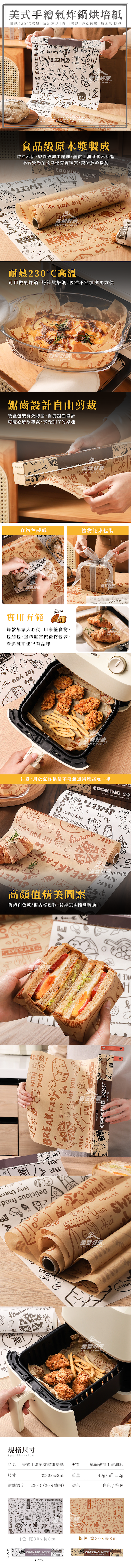 可用做氣炸鍋、烤箱烘焙紙,吸油不沾清潔更方便