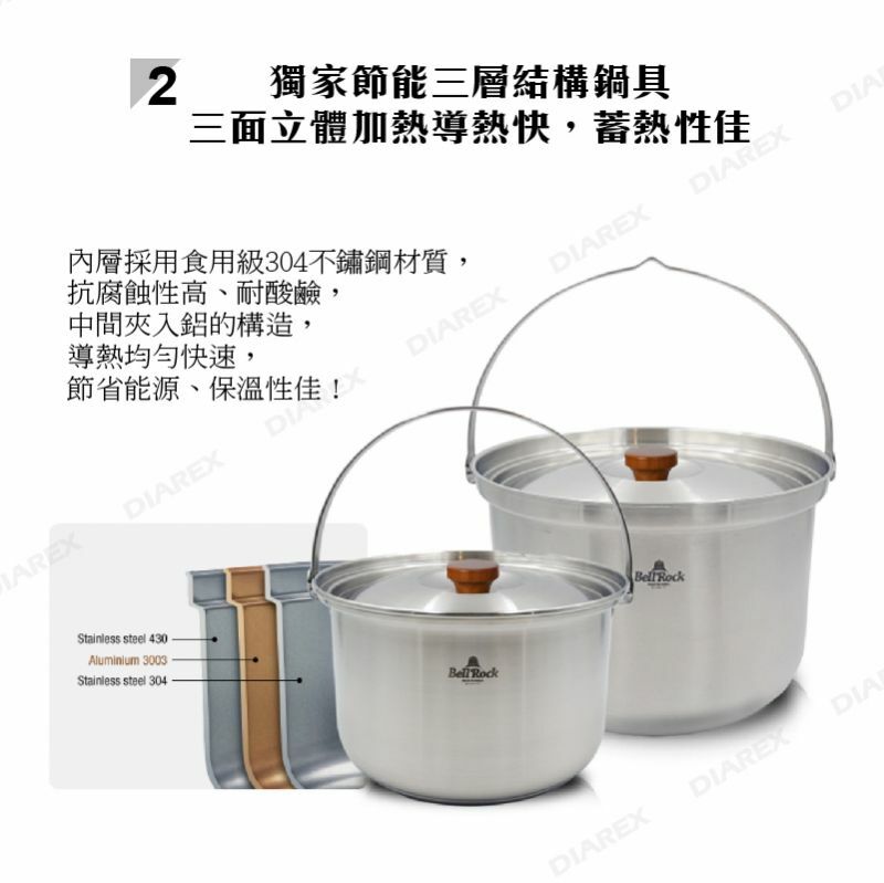 【Bell'Rock】 複合金不鏽鋼戶外炊具組 豪華版COMBI 9 XL-24cm BR-409W