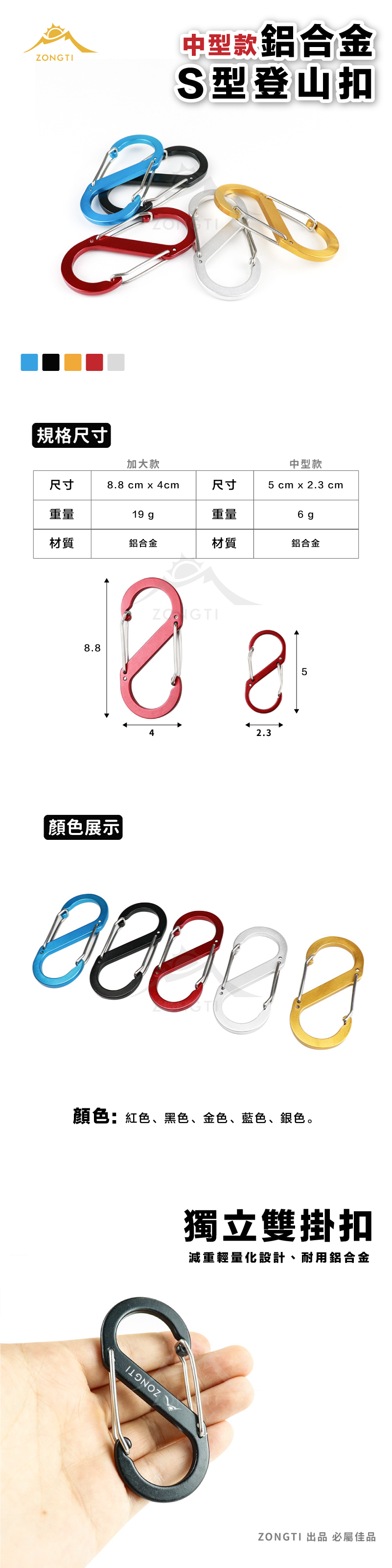 【ZONGTI】中型款 8字扣環/S扣/S掛鉤