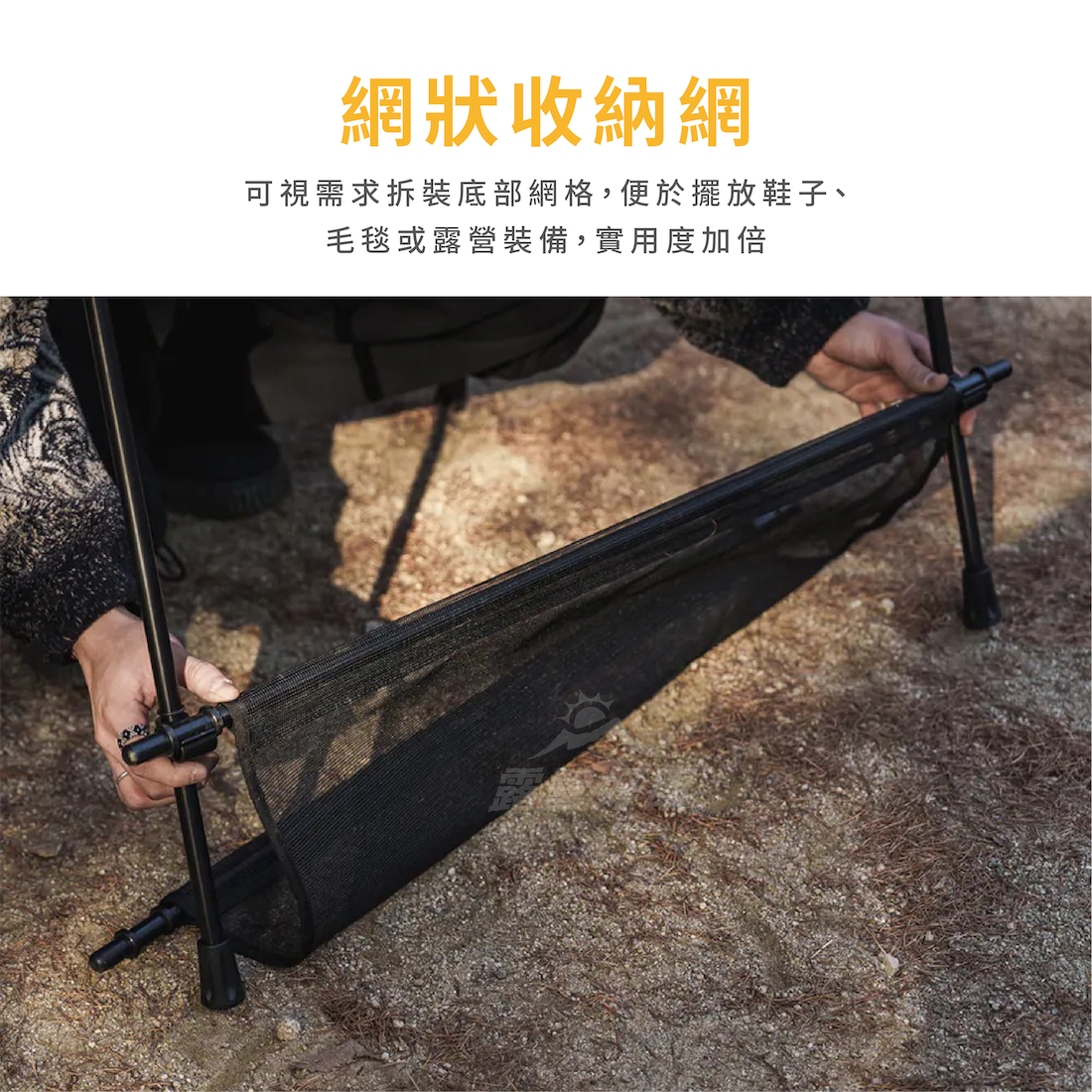 ✔視需求拆裝底部網格,便於擺放鞋子、毛毯或露營裝備