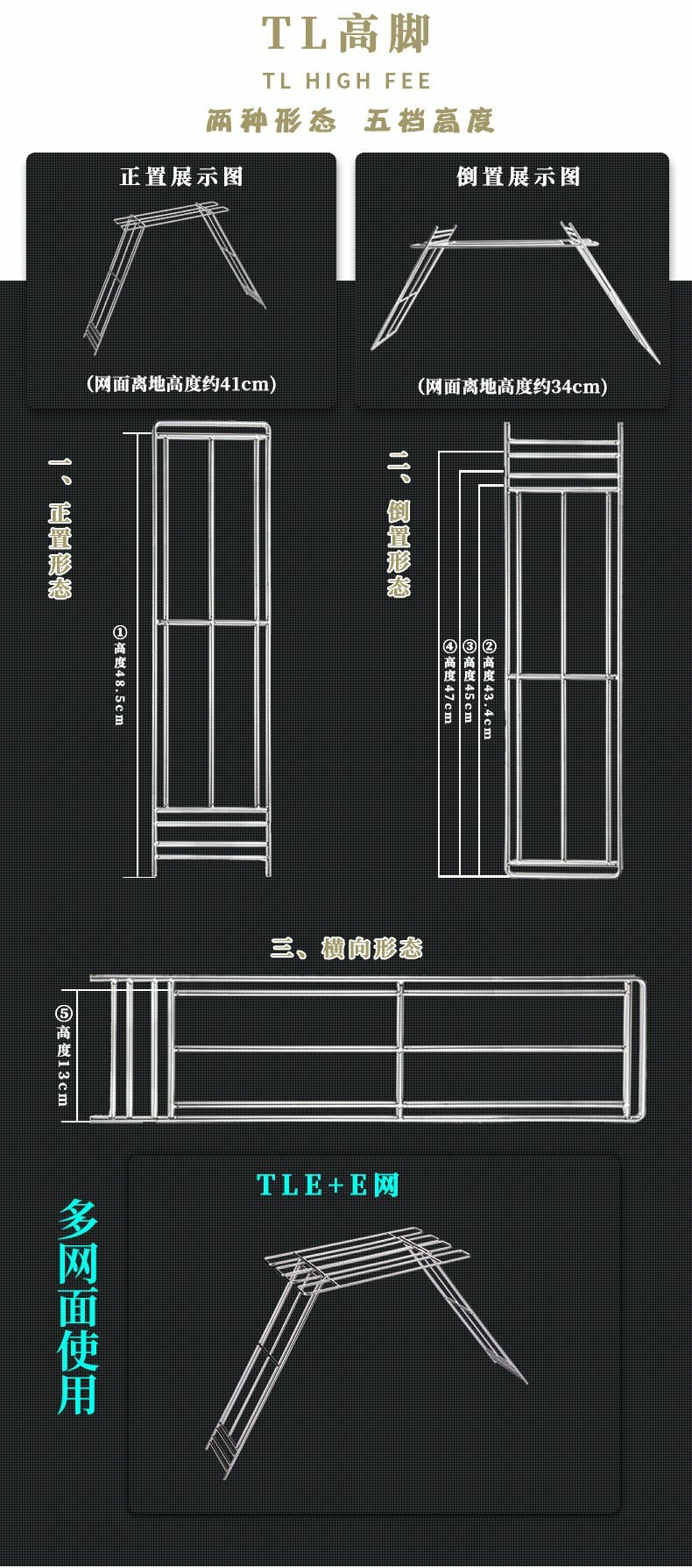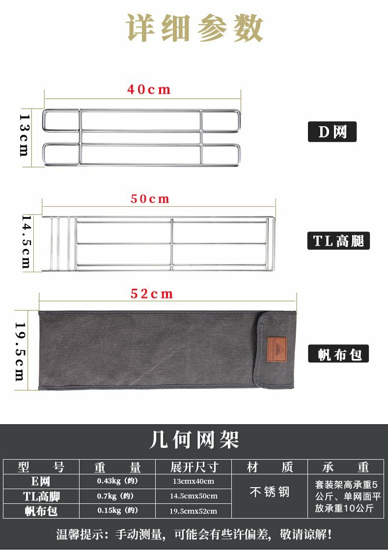 承重:套組架高承重5公斤;單網面平放承重10公斤
