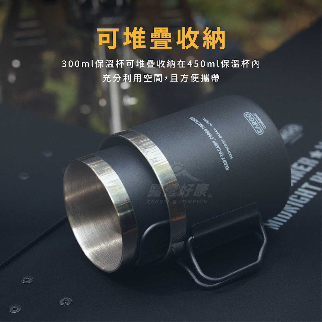 ✔300ml保溫杯可堆疊收納在450ml保溫杯內,充分利用空間,且方便攜帶