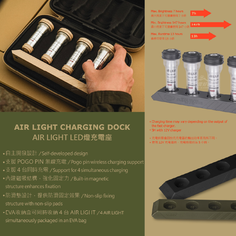 ✔AIR LIGHT LED燈的專屬充電座,同時為4台LED燈充電