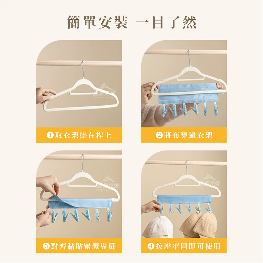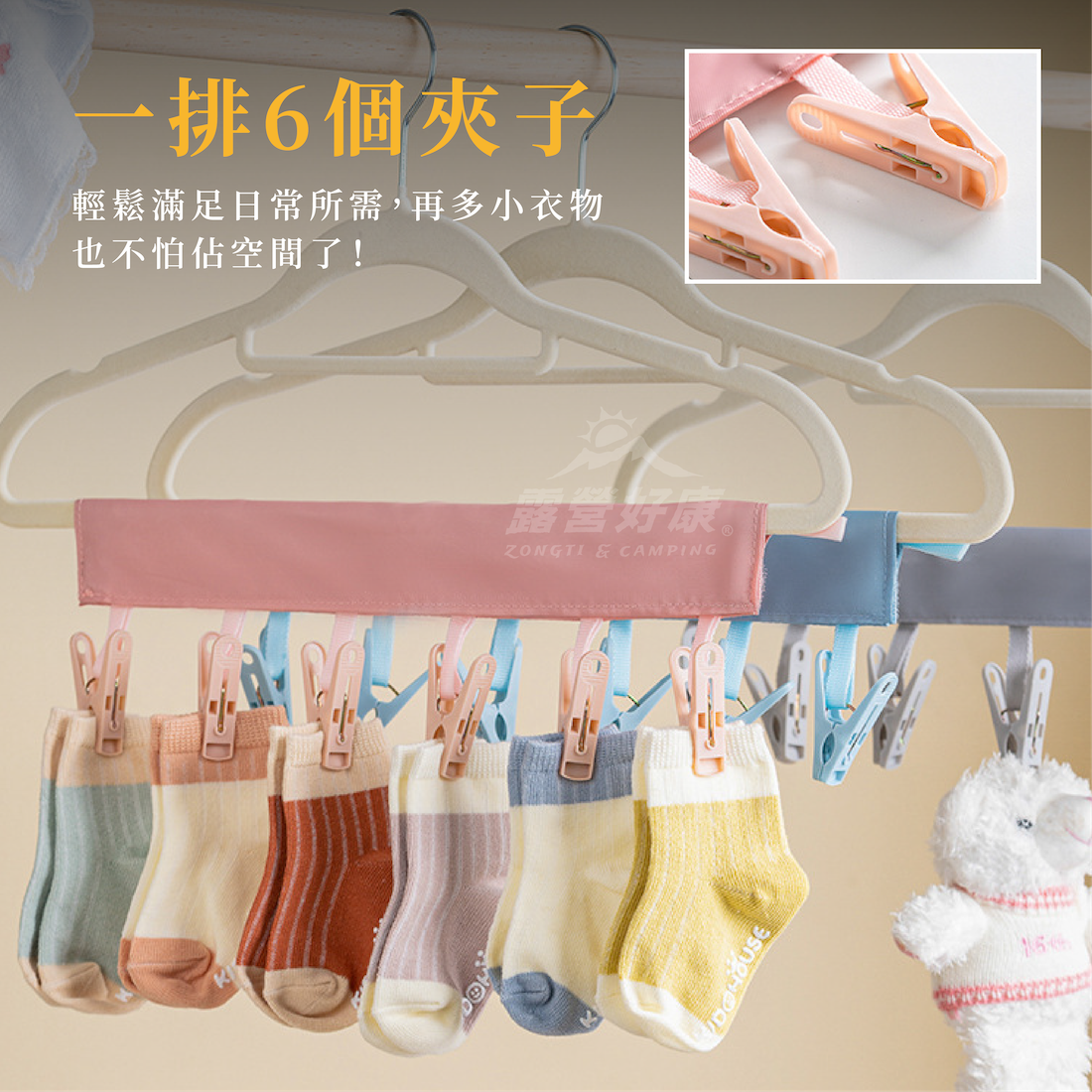 ✔一排6個夾子,輕鬆滿足日常所需,再多小衣物也不怕佔空間了!