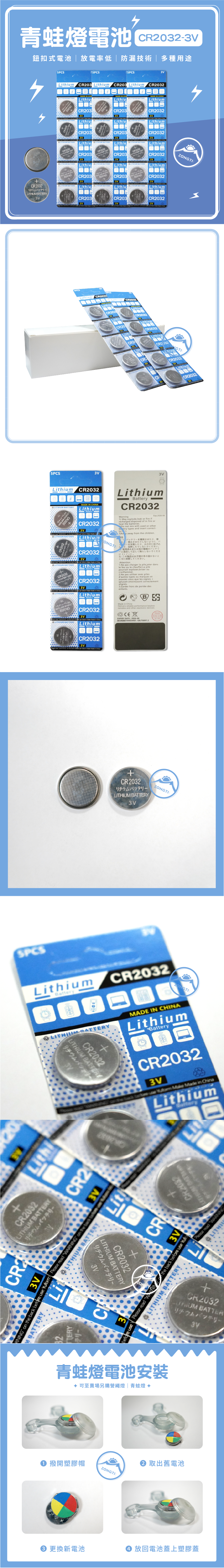 青蛙燈電池 CR2032 3V(一條五入) G-5-2