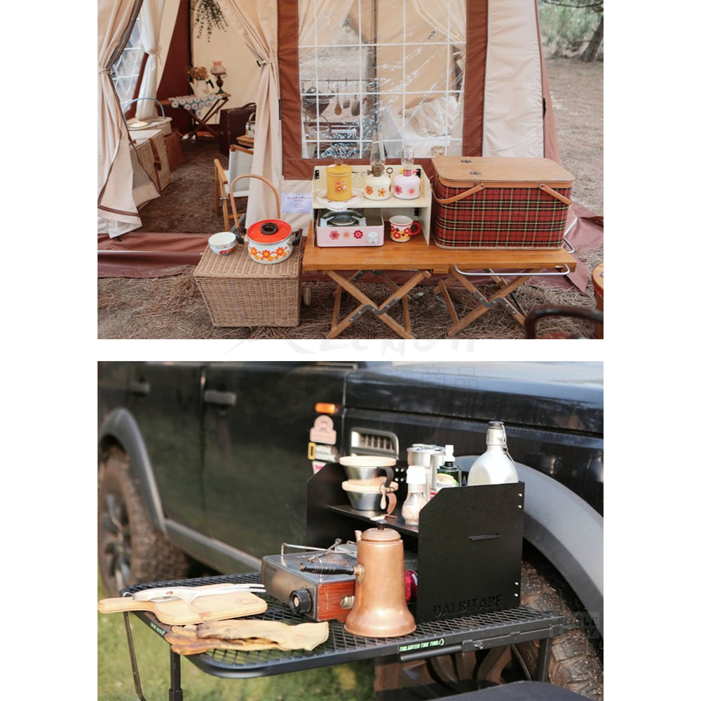兩用途可當折疊擋風板、也是小型收納層架
