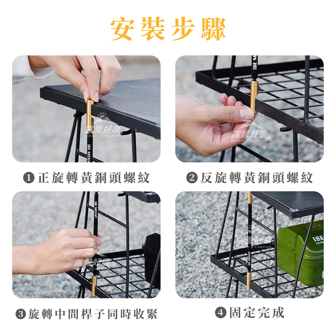 ❸旋轉中間桿子同時收緊