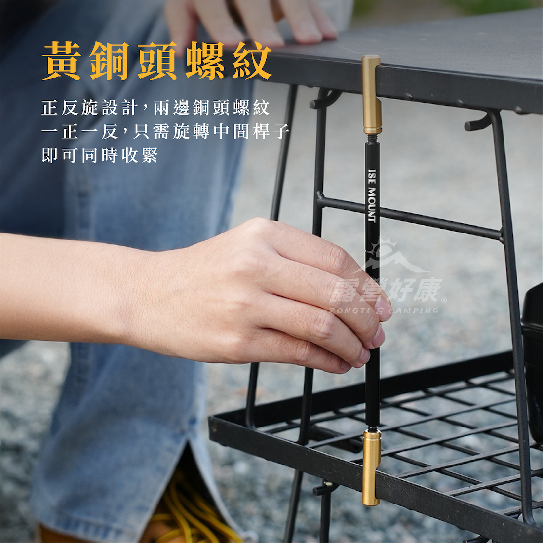 ✔正反旋設計,兩邊黃銅頭螺紋一正一反,只需旋轉中間桿子,即可同時收緊