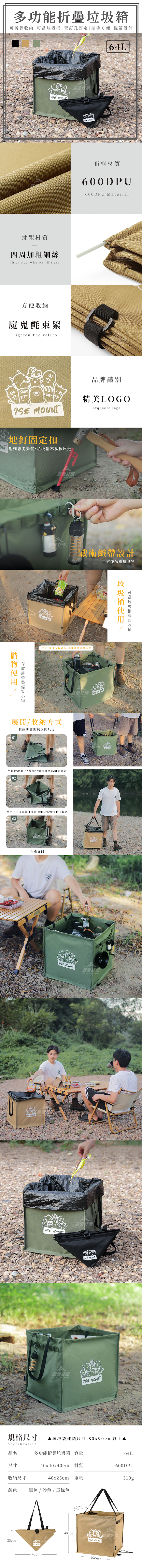 ✔64L 超大容量可摺疊垃圾箱