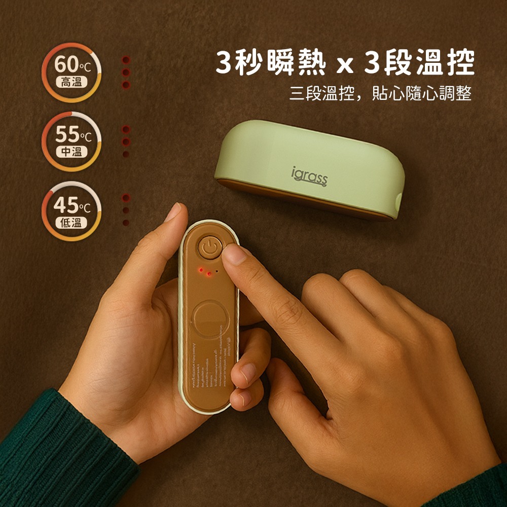 ✔3 秒瞬熱:快速升溫,三段溫控(45°C/55°C/65°C)