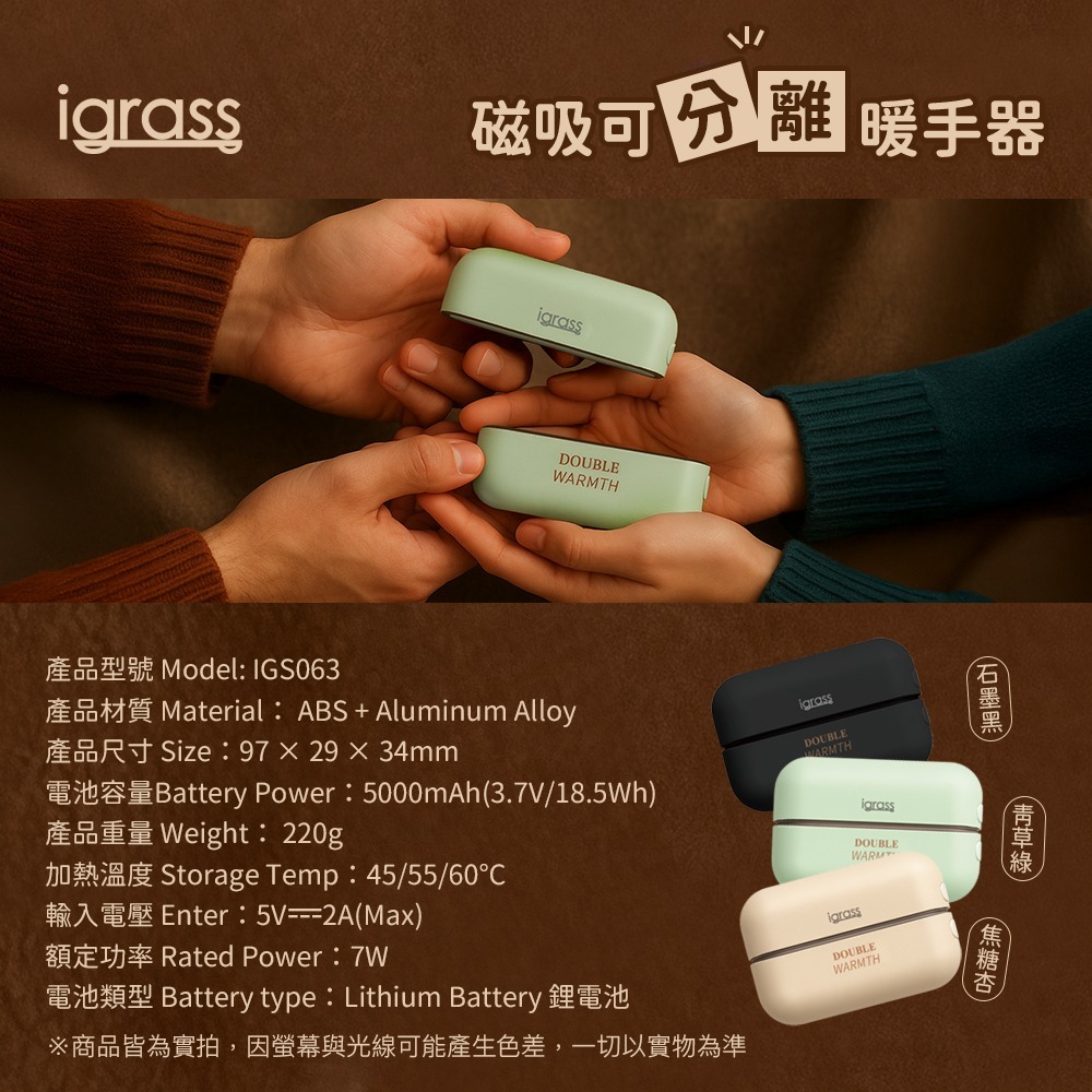 ✔磁吸分離設計:可合體也可分開,一次暖雙手或分享使用